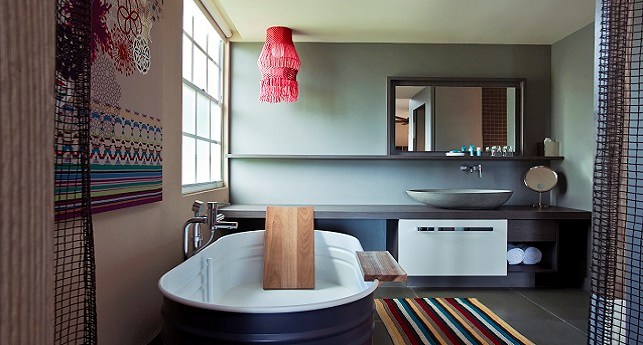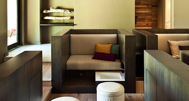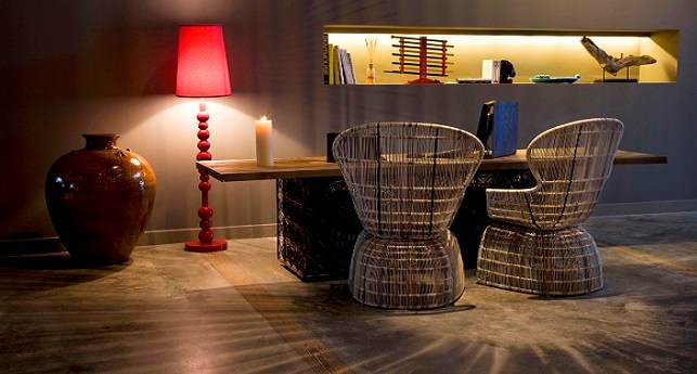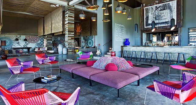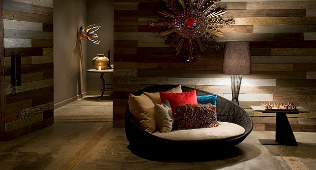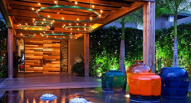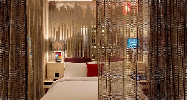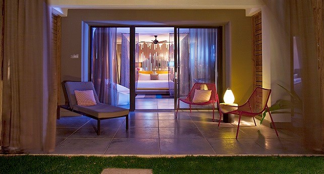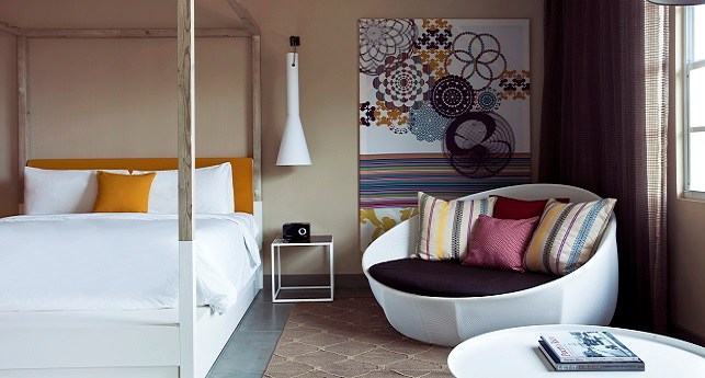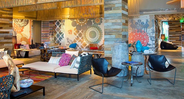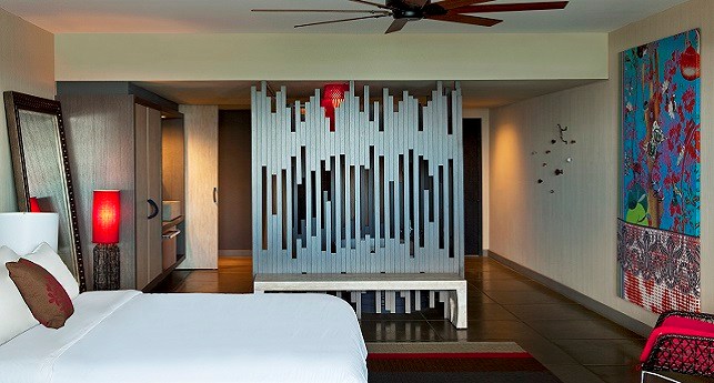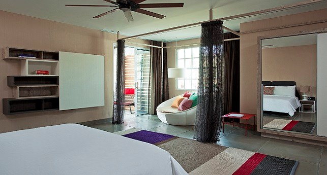 Pool Oasis -It's like spending all day hanging out by the pool, except you're doing it on your own private patio with the best of W-style contemporary sophistications in the ground-floor Pool Oasis, with views and easy access to WET®. As inviting as the beautifully landscaped pool area looks outside, you might prefer to lounge on the windowside chaise lounge tucked cozily into the alcove, wiggling your toes across the cool shine of the dark grey cement tiled floor. For a different point of view, revel in a palette of rich and tropical colors and Caribbean prints mixed with dark wood stone, exclusively designed by the eclectically stylish Patricia Urquiola.